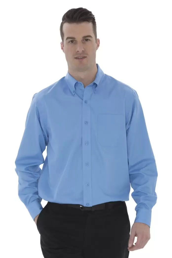 This men's pinpoint long sleeve oxford dress shirt offers comfort and style. Cotton-rich; this shirt has a soft hand for all day or night comfort. Perfect for hotels; resorts; banks or office attire. Embroiders well.